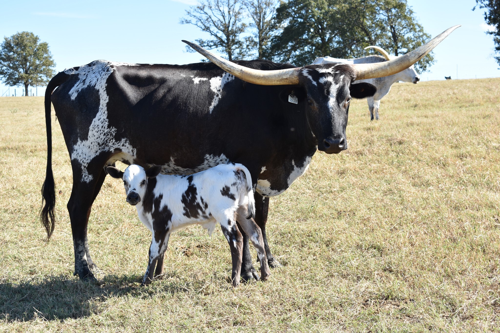 Sired by the 87” homozygous black bull “Saddlehorn” Saddle Ale is true black with a unique frosty white undercoat. Beautiful rolled back horns.