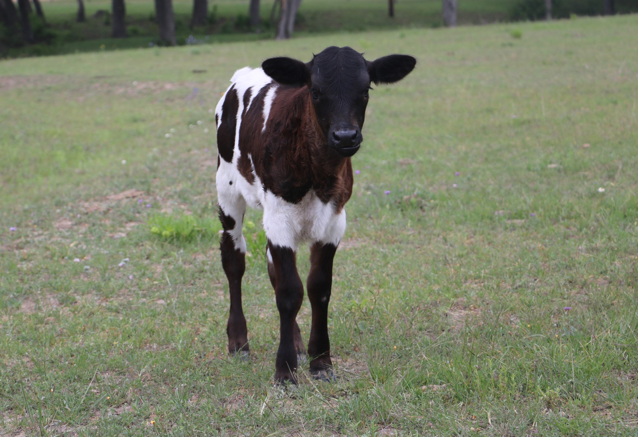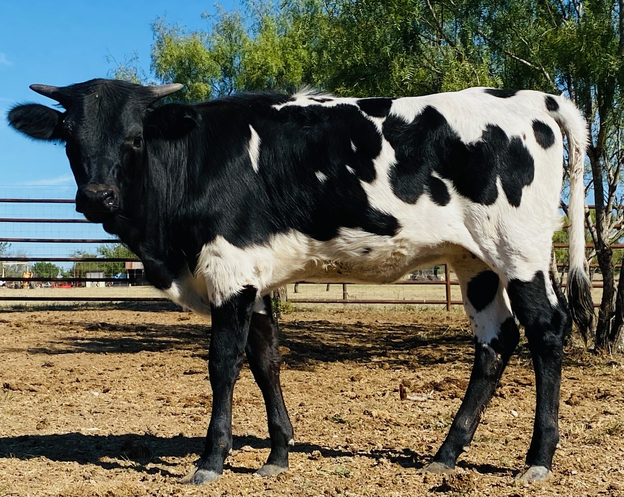 Sweet black and white heifer, with an awesome pedigree.