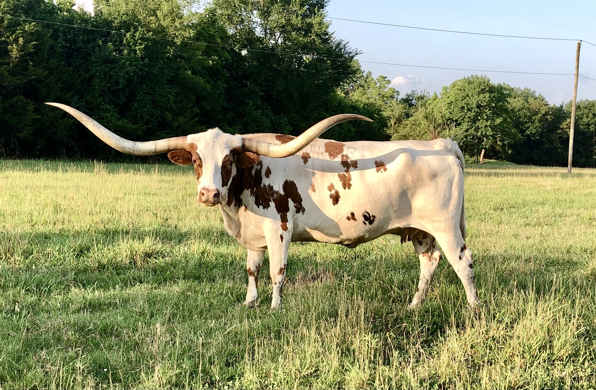 This daughter of Horseshoe J Feat and Cowboy Catchit Chex has become hands down our best producer! The consistency of her offspring is remarkable. In 2023 her daughter, Horseshoe J NS, sold at the Legacy for $115K. We are continuing to develop our breeding program around her with approximately 40% of our herd having her remarkable genetics. She is currently exposed to the striking HH Hired Hand bred by Dale Hunt and owned in partnership with DCT Cattle. We are thankful to have him here and can’t wait to see those babies!
