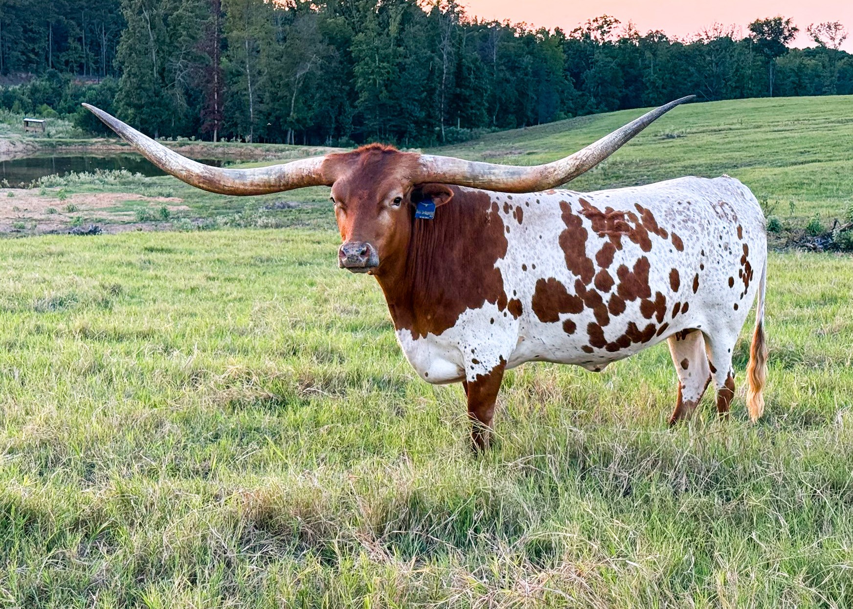 One of the stars of the Bolen Production Sale is this young beauty! Just Delightful shows just what Justify is producing; feminine, well made and lots of horn! She measured in at 80” ttt at 29 months! Her pedigree is jam packed with strong genetics to make a great cow! Her maternal half sister sold for $18k. This sweet, easy going heifer is exposed to Black Market C&B