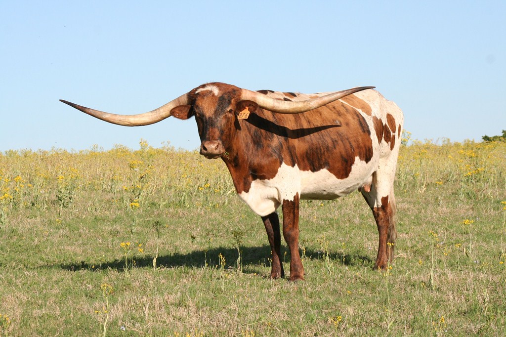 Beautiful cow with sweeping twisty horns. Great confirmation with TTT of 95".