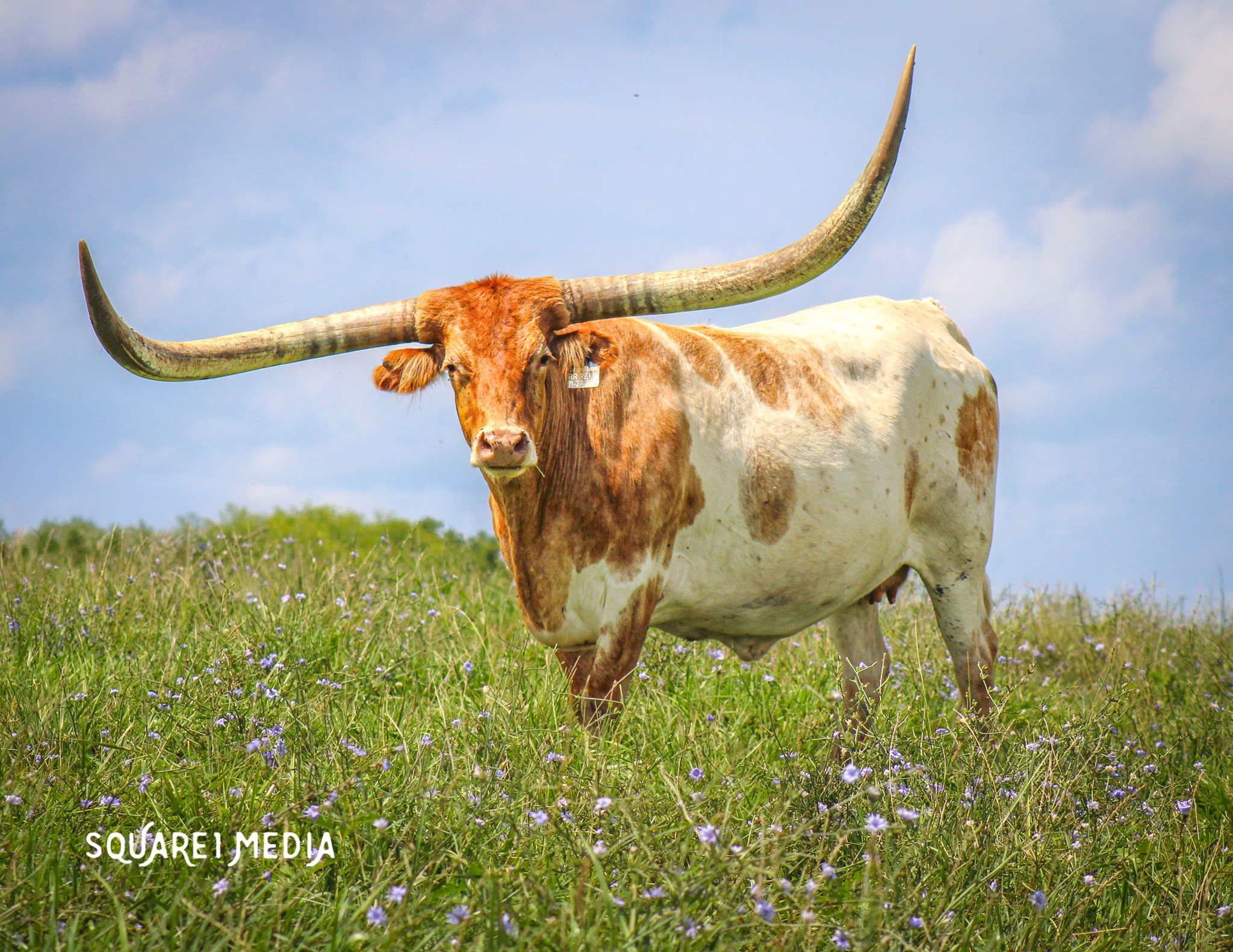 She has 117 inches of total horn and that is with 6 inches tipped off. She is an amazing producer. Her first son was 69in TTT at 24 months. The heifer was 39 TTT at 12 months! Her son MN Raptor measured 85.25" at 3 years old. She also has a daughter owned by the Fritz that is 95" TTT Remy was coat color tested at the University of California Davis and is Wild type/Wild type! www.landesfarmsmo.com