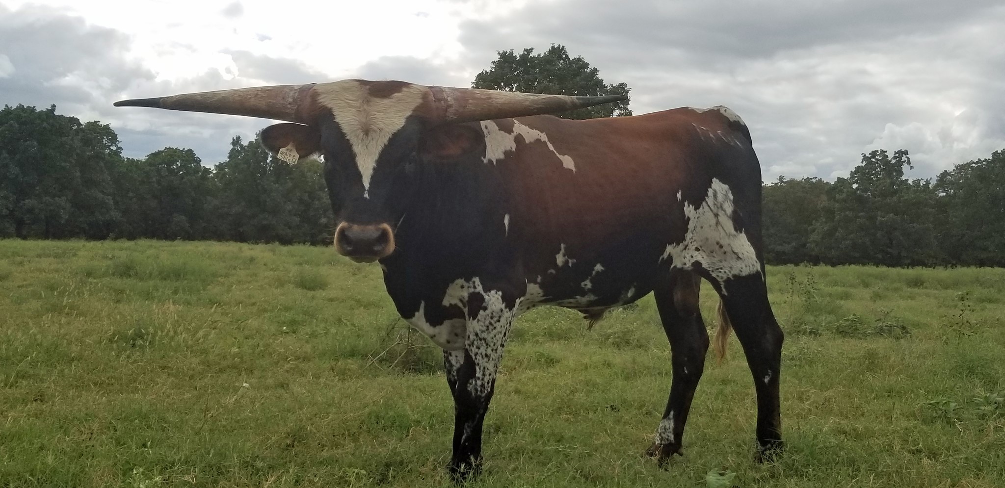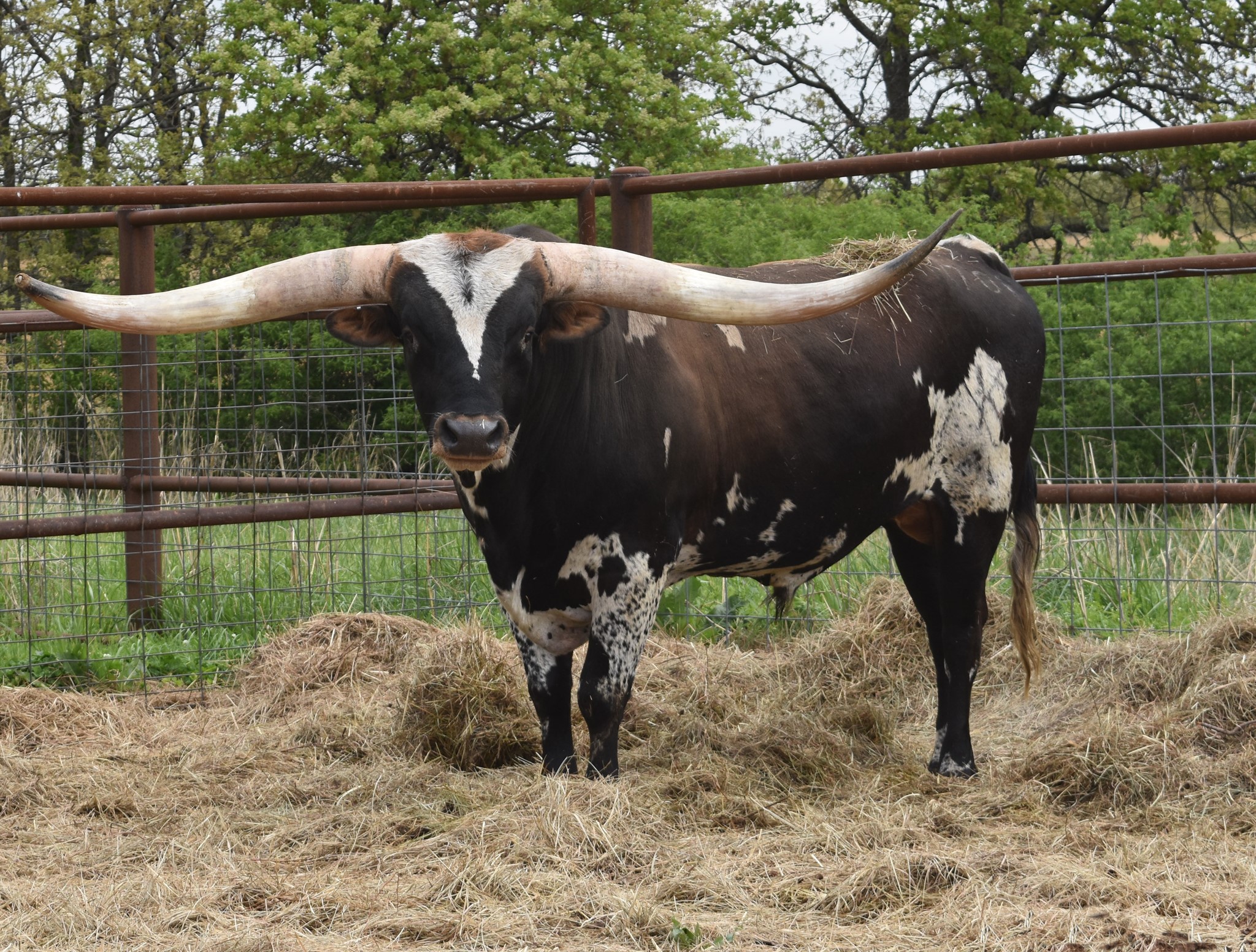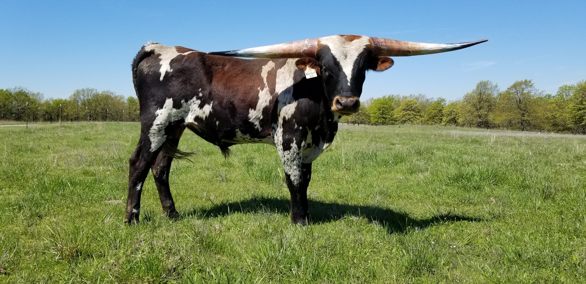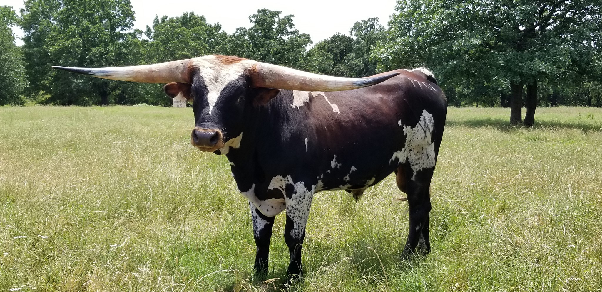 His sire is a full brother to HR Slam's Rose and Rowdy HR and his mom is the best WF Commando cow we have. He is growing horn like crazy... As of 2/13/24 he measured 98.5" TTT and that does NOT count the 3" he broke off his right horn. Warlock HR won every event he entered in the 2019 Horn Showcase.