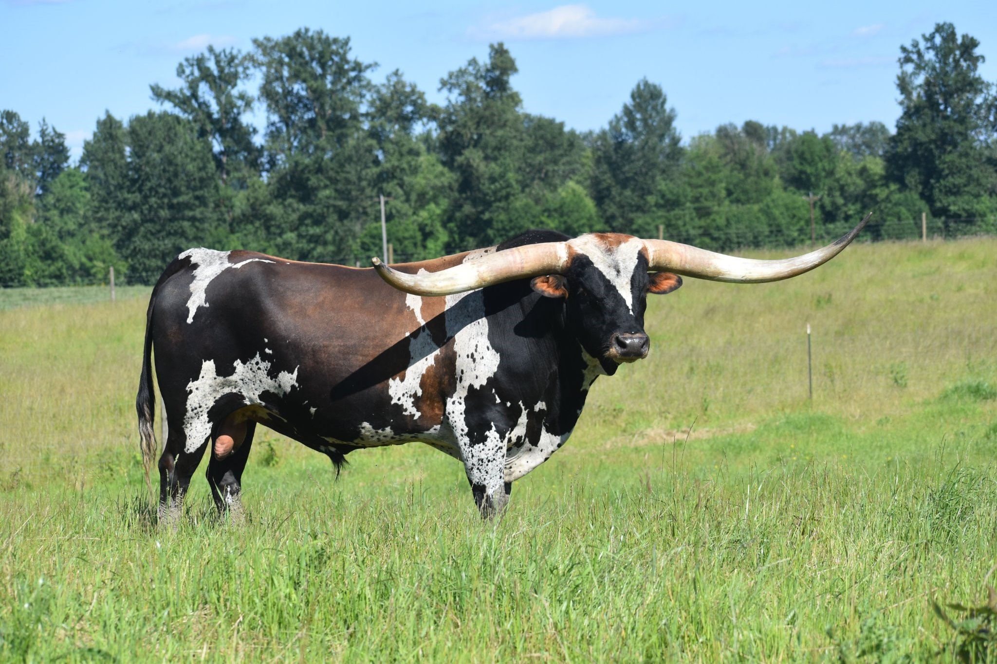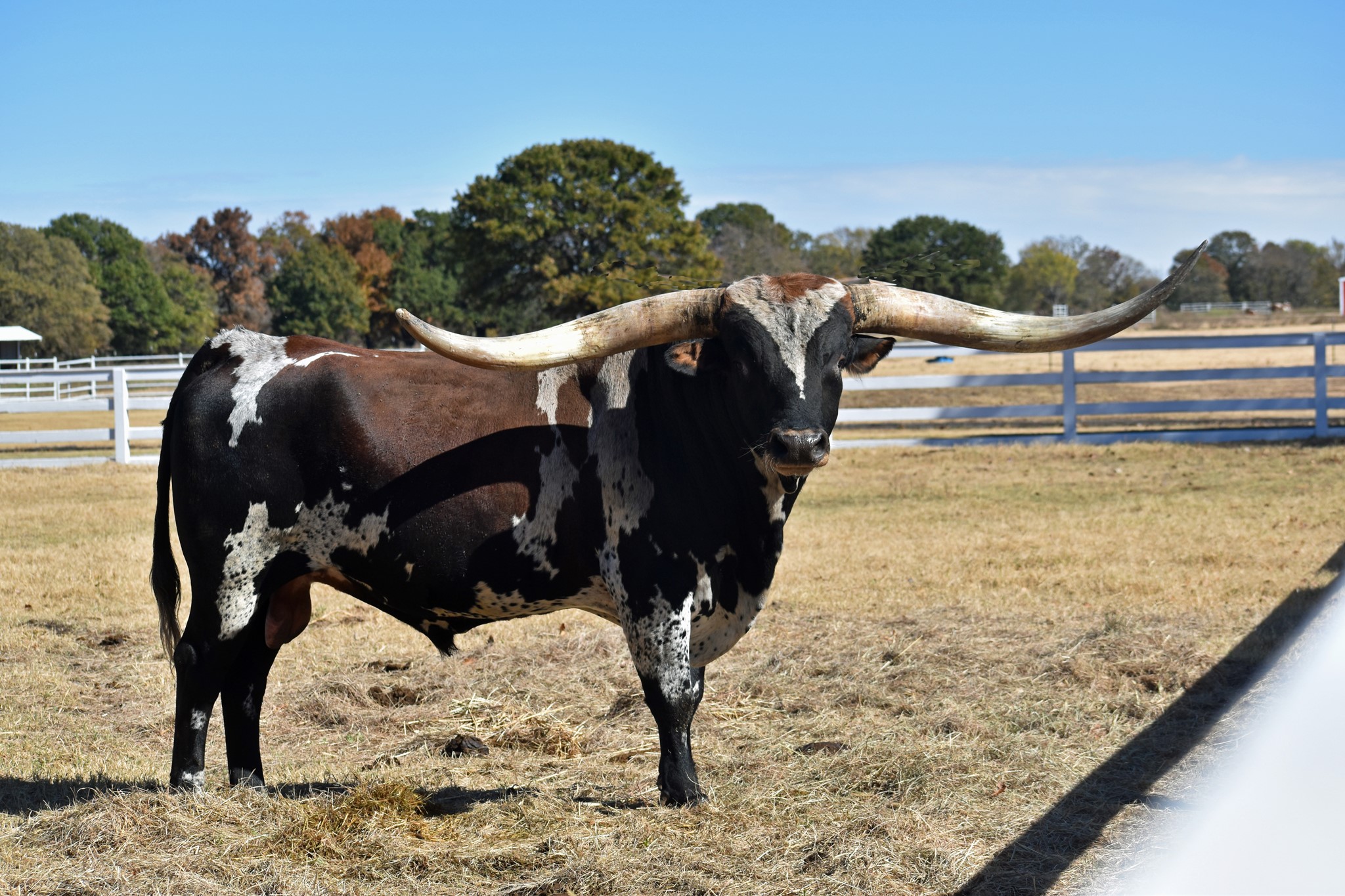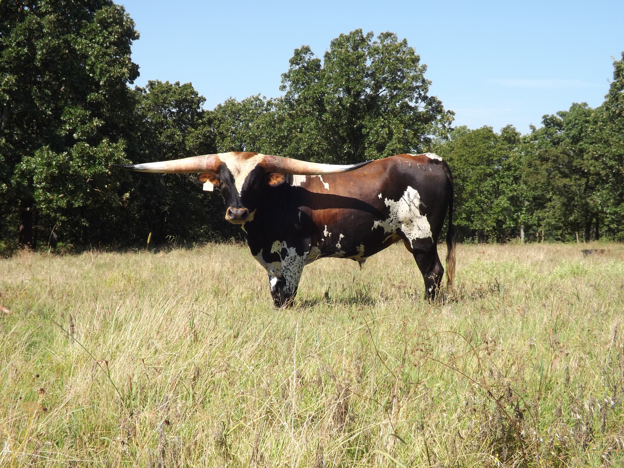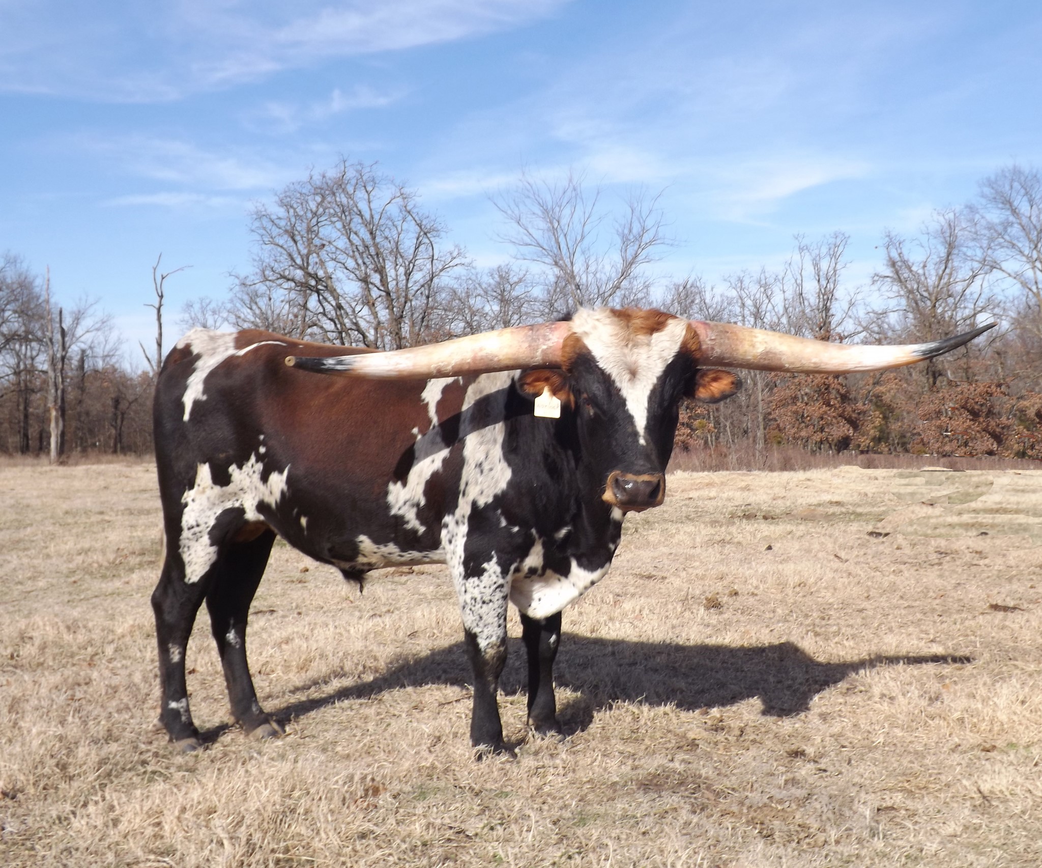 His sire is a full brother to HR Slam's Rose and Rowdy HR and his mom is the best WF Commando cow we have. He is growing horn like crazy... As of 2/13/24 he measured 98.5" TTT and that does NOT count the 3" he broke off his right horn. Warlock HR won every event he entered in the 2019 Horn Showcase.